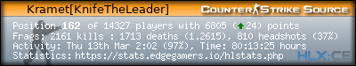 Rank | Server | Kills | % | Ratio | Deaths | K:D | Headshots | Percentage of Headshots | % | HS:K |