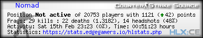 | Rank | Server | Kills | % | Ratio | Deaths | K:D | Headshots | Percentage of Headshots | % | HS:K |