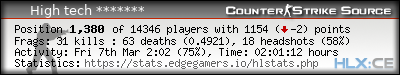 Rank | Name | Time | Last Use | Kills | Deaths | K:D | Headshots | HS:K | Suicides | Accuracy |