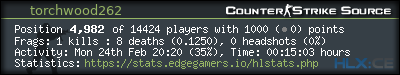 | Rank | Map | Kills | % | Ratio | Deaths | % | Ratio | K:D | Headshots | % | Ratio | HS:K |