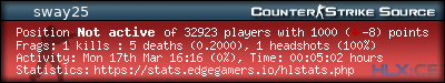 | Favorite Server:* | =(eGO)= | DUST2 | NO AWPS/AUTOS | EdgeGamers.com |