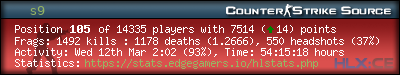 | Rank | Server | Kills | % | Ratio | Deaths | K:D | Headshots | Percentage of Headshots | % | HS:K |