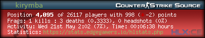 Rank | Map | Kills | % | Ratio | Deaths | % | Ratio | K:D | Headshots | % | Ratio | HS:K |