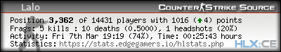 Rank | Map | Kills | % | Ratio | Deaths | % | Ratio | K:D | Headshots | % | Ratio | HS:K |