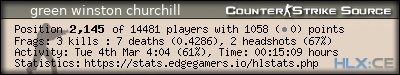 Rank | Name | Time | Last Use | Kills | Deaths | K:D | Headshots | HS:K | Suicides | Accuracy |