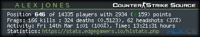 | 1 | =(eGO)= | DUST2 | NO AWPS/AUTOS | EdgeGamers.com | 825 | 100.00% | 823 | 1.0024 | 307 | 100.00% | 0.3721 |