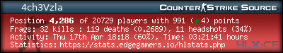 | Rank | Map | Kills | % | Ratio | Deaths | % | Ratio | K:D | Headshots | % | Ratio | HS:K |