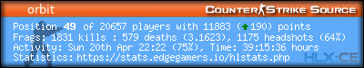 | 1 | =(eGO)= | DUST2 | NO AWPS/AUTOS | EdgeGamers.com | 630 | 100.00% | 206 | 3.0583 | 389 | 100.00% | 0.6175 |