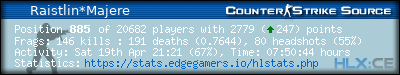 Rank | Map | Kills | % | Ratio | Deaths | % | Ratio | K:D | Headshots | % | Ratio | HS:K |