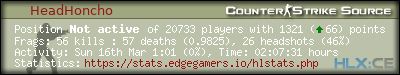 | Rank | Name | Time | Last Use | Kills | Deaths | K:D | Headshots | HS:K | Suicides | Accuracy |