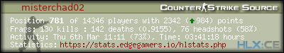 | Rank | Server | Kills | % | Ratio | Deaths | K:D | Headshots | Percentage of Headshots | % | HS:K |