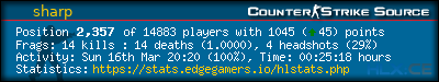 Rank | Map | Kills | % | Ratio | Deaths | % | Ratio | K:D | Headshots | % | Ratio | HS:K |