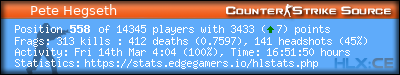 | Rank | Name | Time | Last Use | Kills | Deaths | K:D | Headshots | HS:K | Suicides | Accuracy |