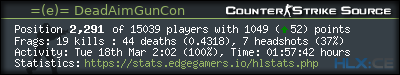 | Rank | Name | Time | Last Use | Kills | Deaths | K:D | Headshots | HS:K | Suicides | Accuracy |