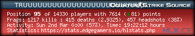Rank | Map | Kills | % | Ratio | Deaths | % | Ratio | K:D | Headshots | % | Ratio | HS:K |