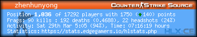 Rank | Map | Kills | % | Ratio | Deaths | % | Ratio | K:D | Headshots | % | Ratio | HS:K |