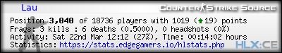 Rank | Map | Kills | % | Ratio | Deaths | % | Ratio | K:D | Headshots | % | Ratio | HS:K |