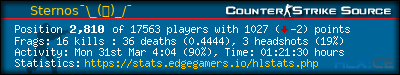 | Favorite Server:* | =(eGO)= | DUST2 | NO AWPS/AUTOS | EdgeGamers.com |