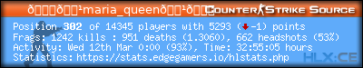 | Rank | Server | Kills | % | Ratio | Deaths | K:D | Headshots | Percentage of Headshots | % | HS:K |