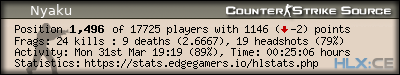 Rank | Server | Kills | % | Ratio | Deaths | K:D | Headshots | Percentage of Headshots | % | HS:K |