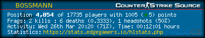 Rank | Map | Kills | % | Ratio | Deaths | % | Ratio | K:D | Headshots | % | Ratio | HS:K |