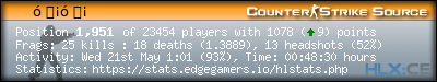 | Rank | Name | Time | Last Use | Kills | Deaths | K:D | Headshots | HS:K | Suicides | Accuracy |