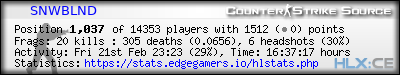 | Rank | Name | Time | Last Use | Kills | Deaths | K:D | Headshots | HS:K | Suicides | Accuracy |