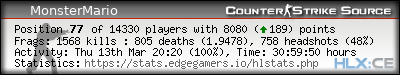 1 | =(eGO)= | DUST2 | NO AWPS/AUTOS | EdgeGamers.com | 123 | 100.00% | 95 | 1.2947 | 76 | 100.00% | 0.6179 |