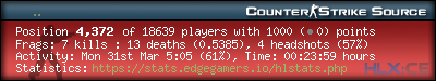 Rank | Name | Time | Last Use | Kills | Deaths | K:D | Headshots | HS:K | Suicides | Accuracy |