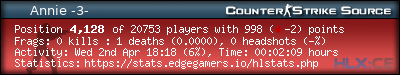 Rank | Map | Kills | % | Ratio | Deaths | % | Ratio | K:D | Headshots | % | Ratio | HS:K |