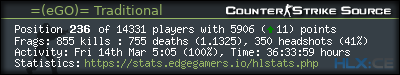 | Favorite Server:* | =(eGO)= | DUST2 | NO AWPS/AUTOS | EdgeGamers.com |