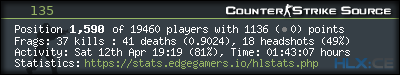 | Rank | Name | Time | Last Use | Kills | Deaths | K:D | Headshots | HS:K | Suicides | Accuracy |