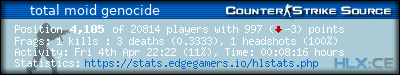 3 | total moid genocide | 0d 00:08:16h | 2025-04-04 22:38:10 | 1 | 3 | 0.33 | 1 | 1.00 | 0 | 0.0% |