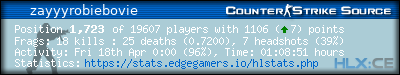 Rank | Server | Kills | % | Ratio | Deaths | K:D | Headshots | Percentage of Headshots | % | HS:K |
