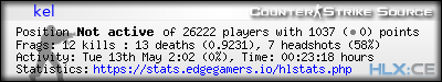 Rank | Map | Kills | % | Ratio | Deaths | % | Ratio | K:D | Headshots | % | Ratio | HS:K |
