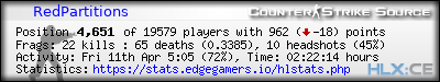 Rank | Map | Kills | % | Ratio | Deaths | % | Ratio | K:D | Headshots | % | Ratio | HS:K |