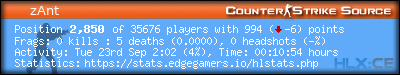 Rank | Map | Kills | % | Ratio | Deaths | % | Ratio | K:D | Headshots | % | Ratio | HS:K |