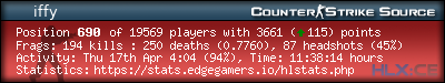 | Rank | Name | Time | Last Use | Kills | Deaths | K:D | Headshots | HS:K | Suicides | Accuracy |