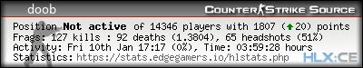 | Weapon Accuracy: | 16.4% (0%*) | |