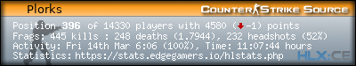 Rank | Server | Kills | % | Ratio | Deaths | K:D | Headshots | Percentage of Headshots | % | HS:K |