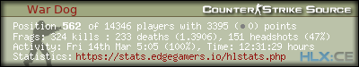 | 1 | =(eGO)= | DUST2 | NO AWPS/AUTOS | EdgeGamers.com | 213 | 100.00% | 110 | 1.9364 | 98 | 100.00% | 0.4601 |