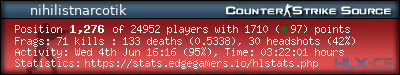 | 3 | nihilistnarcotik | 0d 00:11:18h | 2025-06-04 16:54:47 | 8 | 7 | 1.14 | 5 | 0.63 | 0 | 0.0% |