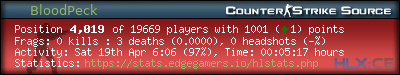 Rank | Map | Kills | % | Ratio | Deaths | % | Ratio | K:D | Headshots | % | Ratio | HS:K |