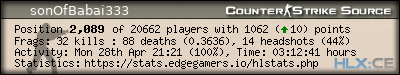Headshots per Kill: | 0.5185 (0.8000*) | |