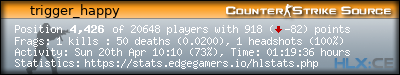 Rank | Map | Kills | % | Ratio | Deaths | % | Ratio | K:D | Headshots | % | Ratio | HS:K |