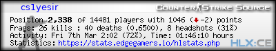 | Rank | Name | Time | Last Use | Kills | Deaths | K:D | Headshots | HS:K | Suicides | Accuracy |