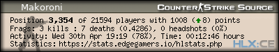 Rank | Map | Kills | % | Ratio | Deaths | % | Ratio | K:D | Headshots | % | Ratio | HS:K |
