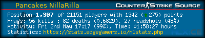 Rank | Map | Kills | % | Ratio | Deaths | % | Ratio | K:D | Headshots | % | Ratio | HS:K |
