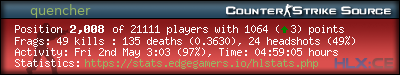 Rank | Map | Kills | % | Ratio | Deaths | % | Ratio | K:D | Headshots | % | Ratio | HS:K |
