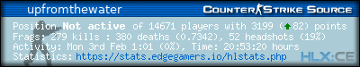 1 | =(eGO)= | DUST2 | NO AWPS/AUTOS | EdgeGamers.com | 162 | 100.00% | 195 | 0.8308 | 52 | 100.00% | 0.3210 |